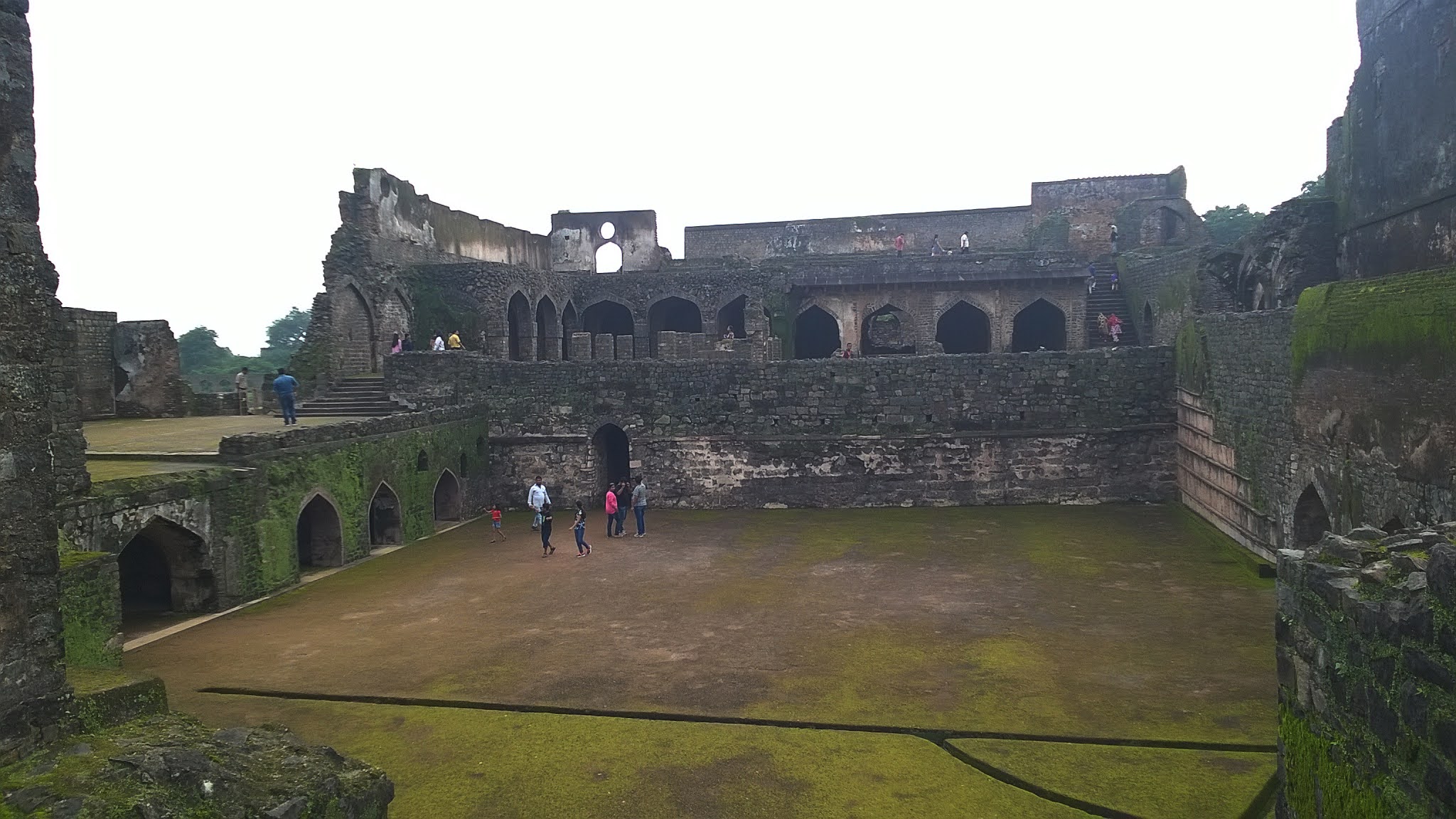 Po wyjściu z mauzoleum wracam się kawałeczek pod główne wejście do meczetu i po przejściu przez ulicę wspinam się po schodach do ruin Asharfi Mahal. Pałac początkowo był budowany jako medresa, czyli szkoła religijna przez Muhammada Szacha, ale potem zmieniono jego przeznaczenie na pałac dla żon szacha. Z jego nazwą, która oznacza Pałac Złotej Monety wiąże się legenda, która mówi, że jeden z królów Malwy uważał swoje żony za zbyt grube i kazał im do pałacu wspinać się po schodach zamiast wnoszenia ich w lektykach. Aby im jednak osłodzić los za pokonanie każdego stopnia dostawały złotą monetę 😉. Muhammad Szach na jego terenie wzniósł też 7-pietrową Wieżę Zniszczenia, która jednak nie dotrwała do naszych czasów, gdyż zawaliła się prawdopodobnie wskutek błędów konstrukcyjnych.